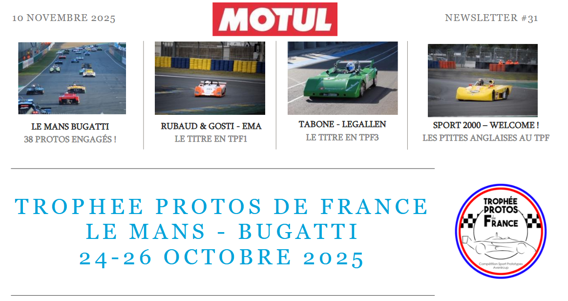 - Le règlement sportif et technique du Trophée Proto de France 2026 a été validé par la FFSA le 14 janvier : disponible ici.